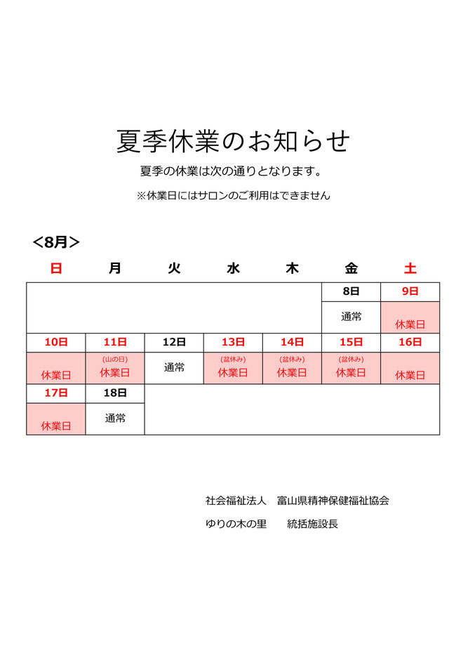 <夏季休業のお知らせ>
