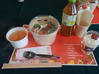 12月17日(水) 12:00~令和7年度 クリスマス☆忘年会を交流施設にて開催しました。皆さんで美味しい食べ物を囲みながら、ビンゴゲームやじゃんけん大会、富大合唱サークルの合唱を楽しむことが出来ました。